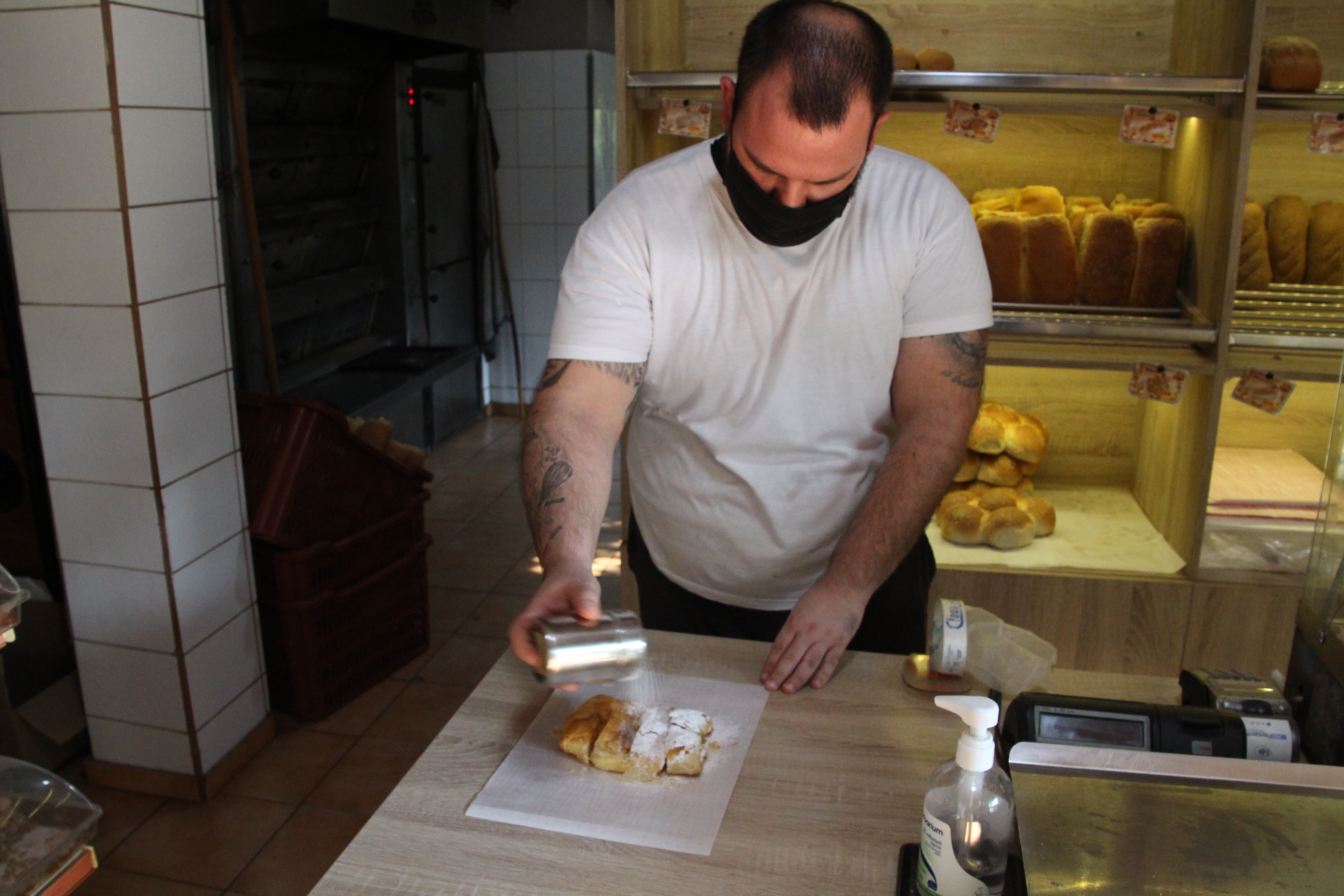 Vor fünf Jahren hat der jetziger Besitzer die Backerei Christoudis übernommen, nachdem er zuvor in Thessaloniki angestellt war. Das Tollste an seinem Beruf ist für ihn der Kontakt zu den Kunden – zu sehen, was sie am liebsten mögen, der Duft von frischen Backwaren in seinem kleinen, eigentlich recht unprätentiösen Laden mit direkt angrenzender Backstube genießen. Deshalb steht er auch bereitwillig tagtäglich von 4 bis 15 Uhr in seiner Bäckerei. Ein weiterer Mitarbeiter beliefert mit einem Bäckerauto die umliegenden Dörfer.