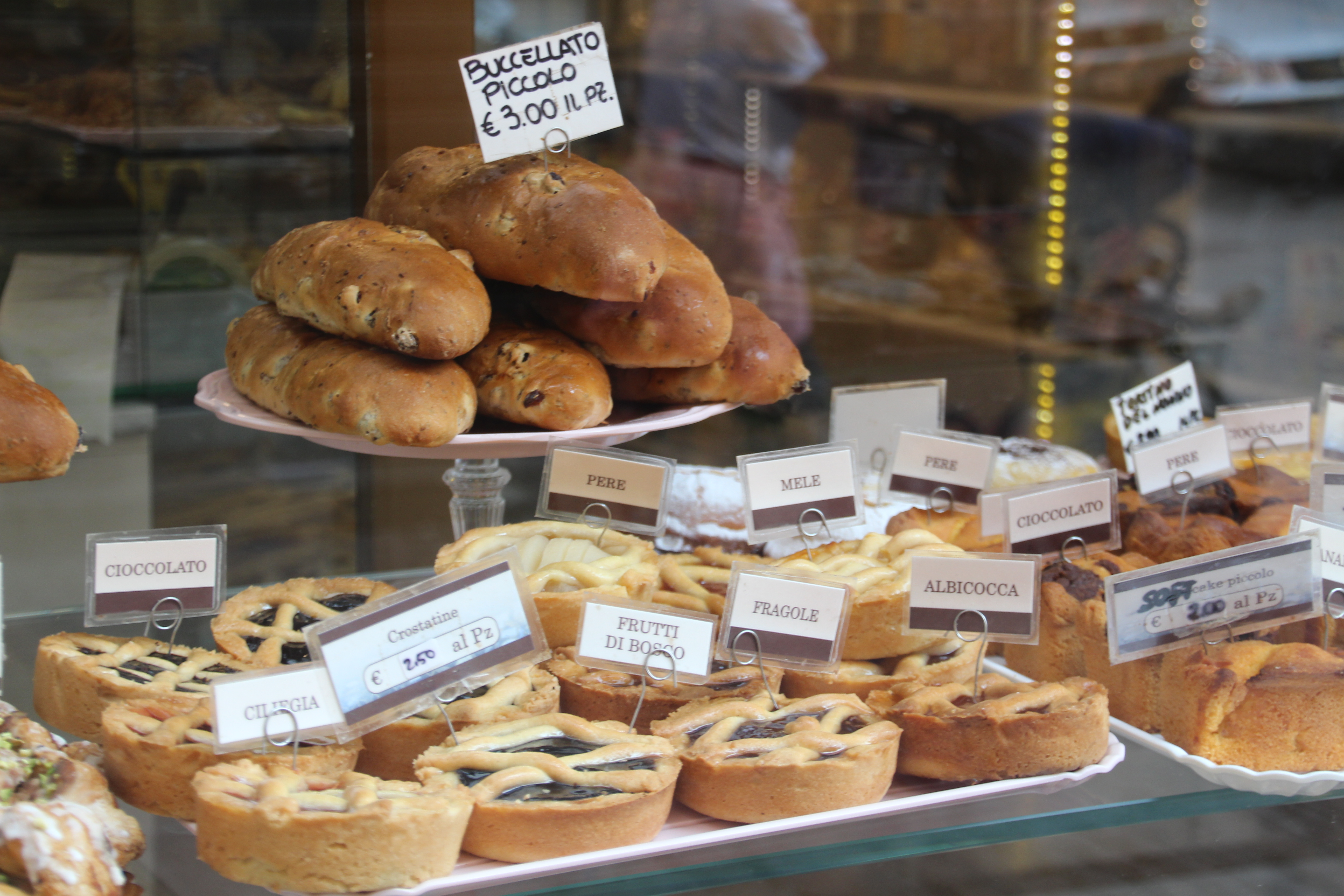 Die Bäckerei Cifenti bietet bereits in ihrer Schaufensterauslage eine große Auswahl an verschiedenen Variationen dieses Kuchens an. Die Verkäuferin erzählt mir stolz, dass die Torta ihre Hauptspezialität sei. Noch dazu sei ihre Bäckerei die angeblich älteste der Stadt. Bei diesem Superlativ steht sie zwar nicht alleine da – wie dem auch sei, es handelt sich um eine alte Bäckerei deren Produkte handgemacht sind und köstlich schmecken.